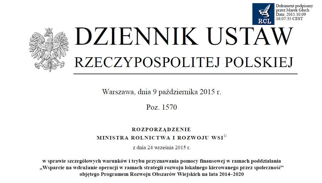 Przedstawiamy opublikowany tekst rozporządzenia Ministra Rolnictwa i Rozwoju Wsi z dnia 24 września 2015 r. w sprawie szczegółowych warunków i trybu przyznawania pomocy finansowej w ramach poddziałania