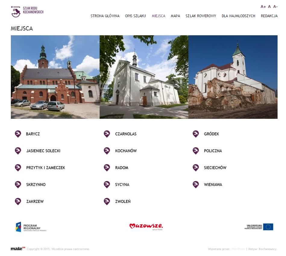 Szlak Rodu Kochanowskich to szlak turystyczny prowadzący przez ziemię radomską, przez miejsca, których historia związana jest z rodziną Kochanowskich herbu Korwin. Ta znana i ceniona rodzina szlachecka budzi powszechne zainteresowanie głównie z uwagi na związki z Janem Kochanowskim – poetą, choć także inni jej przedstawiciele byli literatami, tłumaczami, wydawcami oraz pełnili ważne funkcje publiczne. Zachęcamy Państwo do odwiedzenia strony internetowej promującej Szlak Rodu Kochanowskich na której znajdziemy opis szlaku wraz z informacją na temat poszczególnych miejsc, mapę, szlak rowerowy, a dla najmłodszych kolorowanki i interaktywne puzzle.