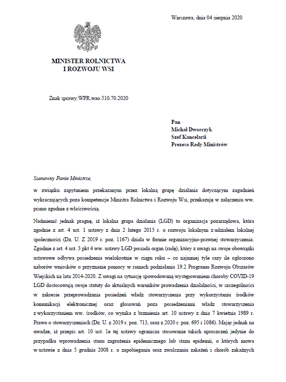Zagadnienia wykraczające poza kompetencje Ministra Rolnictwa i Rozwoju Wsi