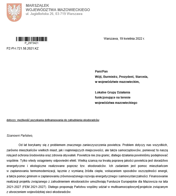 Projekt sieci ekodoradców w ramach FEM 2021-2027