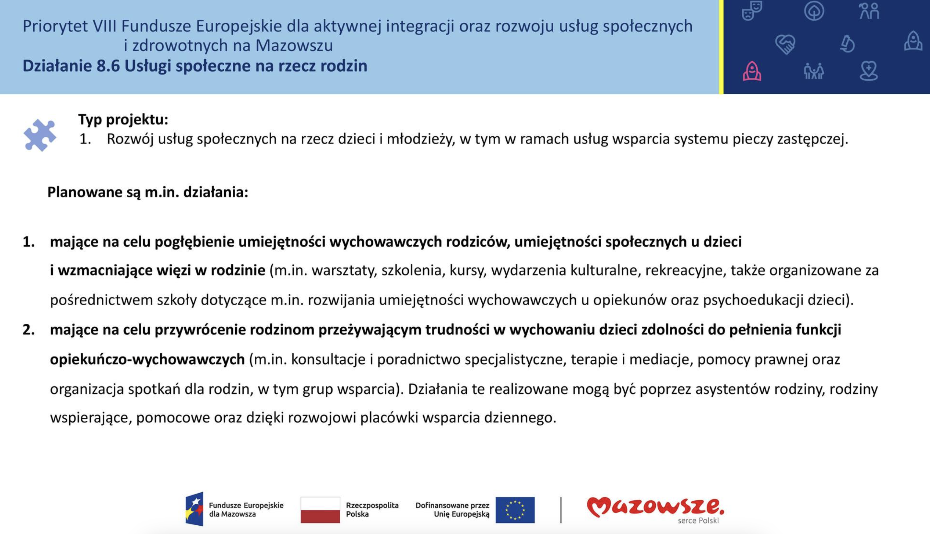Konkurs w ramach FEM 8.6 Usługi społeczne na rzecz rodzin dla regionu mazowieckiego regionalnego (RMR)