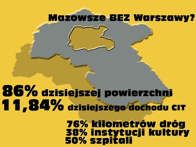 Pan Marszałek zadaje w nim pytanie: „Jaka przyszłość czekała by nasz region, gdyby doszło do zapowiadanego wyodrębnienia Warszawy i powiatów ją okalających? Liczby mówią same za siebie. Powierzchnia województwa nie zmniejszyłaby się drastycznie, bo tylko o 14 proc. Jednak to właśnie na tych 14 proc. – czyli w stolicy i jej sąsiedztwie – działa 70 proc. firm generujących wpływy do mazowieckiego budżetu. Jak przełożyłoby się to na dochody „nowego” województwa? Dochody z podatku CIT spadłyby o ok. 90 proc.! A warto zauważyć, że większość dotychczasowych zadań pozostałaby do wykonania. Czy jakikolwiek, nawet najbardziej doświadczony i kompetentny wójt czy starosta byłby wstanie z dnia na dzień zredukować swój budżet o 90 proc.? Obawiam się, że jest to niemożliwe.